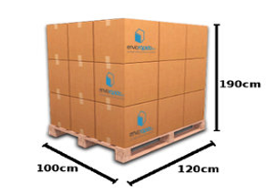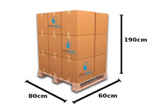 Enviar palet que mide 120cm x 100cm, tiene una capacidad de carga de 1500 kg y se utiliza cuando el volumen de las cajas es muy grande y se necesita más plataforma de carga.
